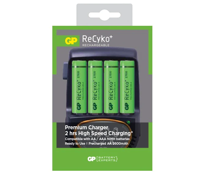• Charge 1 to 4 AA or AAA NiMH rechargeable batteries