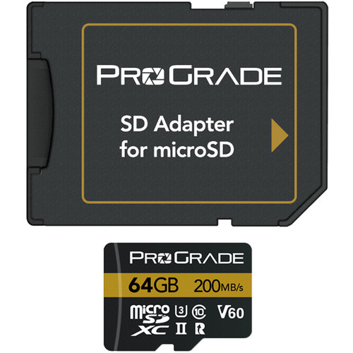 The Prograde Digital 64GB V60 Memory Card 200MB/s features a storage capacity of 64GB and takes advantage of the UHS-II bus to support maximum read speeds of 200 MB/s and maximum write speeds of 130 MB/s. This card has also been designed with the V60 Video Speed Class rating, which guarantees minimum write speeds of at least 60 MB/s, allowing the card to be used in DSLRs, mirrorless cameras, camcorders, and digital cinema cameras to produce 4K, UHD 4K, 3D, Full HD, and high bit rate MPEG-4 video. It is also well suited for raw photos and rapid-fire bursts.